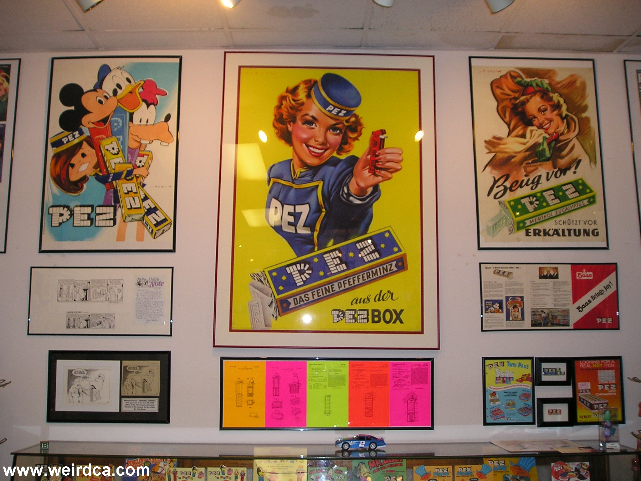 The museum houses every form of Pez dispenser ever made, with over 500 Pez dispensers on display within. There is even the ultra rare Pez Super Spiel, which was similar to a Mr. Potato Head Pez dispenser in that you could change the face, eyes, etc. Because it was determined to be a choking hazard, it was pulled from the stores very quickly.