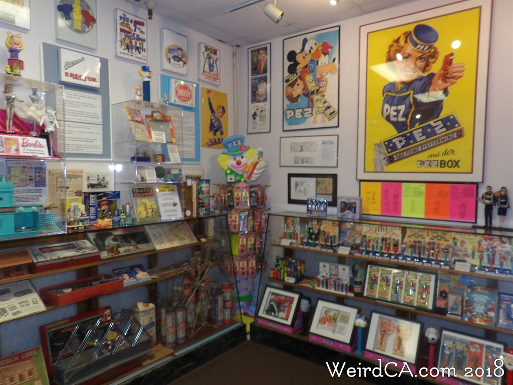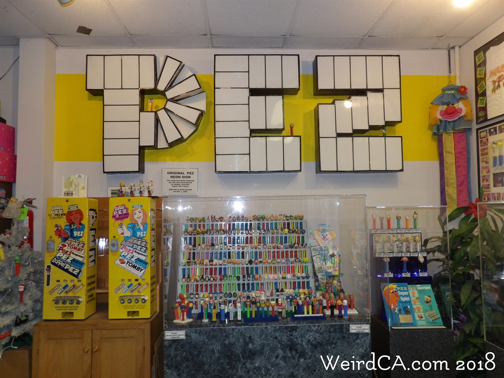 In Burlingame, fairly close to the San Francisco airport, lies the Museum of Pez, a two room shop / museum, that is extremely worth the visit and price. Upon entering the Museum of Pez, you will first find yourself in the gift shop allowing one to purchase a myriad of Pez dispensers, Pez memorabilia, and other toys. Most likely sitting behind the counter will be Gary Doss, the curator of the museum. If he's sitting down when you arrive, you may be misled by his height initially, but don't let Gary's height bother you, he's gotta be way over 6'6". Not only is he a very jovial and outstanding museum curator, but he was able to answer every Pez related question I asked of him. He is extremely knowledgeable about the museum's subject matter and will give a rather entertaining presentation about the museum.