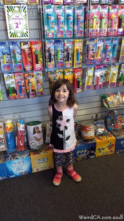 In the back right corner of the gift shop is what use to be the World's Biggest Pez Dispenser, clocking in at 7 foot 10 inches tall. It weighs 85 lbs, is over twenty times the size of a normal Pez dispenser, and stands taller than Gary, although not much. Acknowledged by the Guinness World Record as the World's Largest Candy Dispenser it was completed in September of 2006 and actually can spit out a clear plastic capsule from its flip top head. The clear plastic capsule can hold either 6,480 Pez candies or a single standard size Pez dispenser.